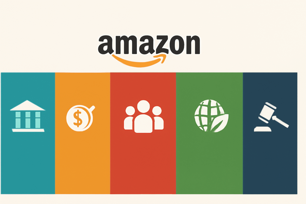 Amazon, a global leader in e-commerce, technology, and cloud services, operates in a highly dynamic environment shaped by various external factors. Its growth and success are influenced by political, economic, social, technological, environmental, and legal forces. The company’s political landscape is affected by regulatory scrutiny, labor laws, and competition laws in multiple regions, while its economic strategies are focused on growth, pricing, and diversification. Social factors like consumer behavior, labor practices, and technological advancements play a central role in shaping Amazon’s business model.